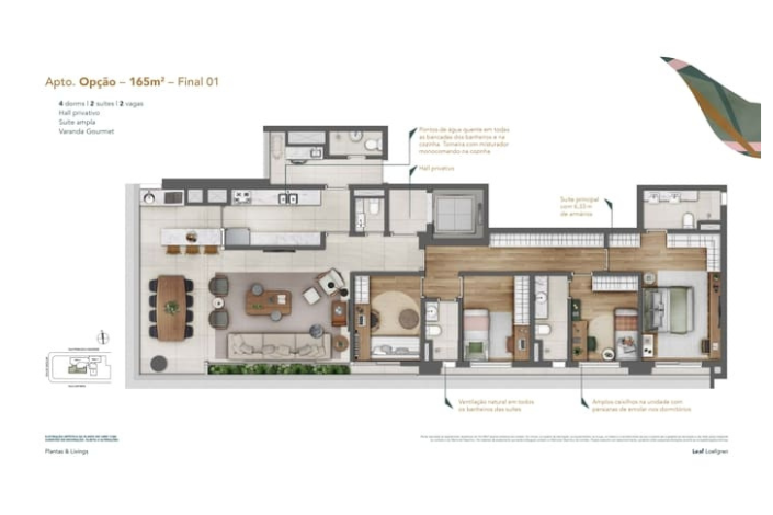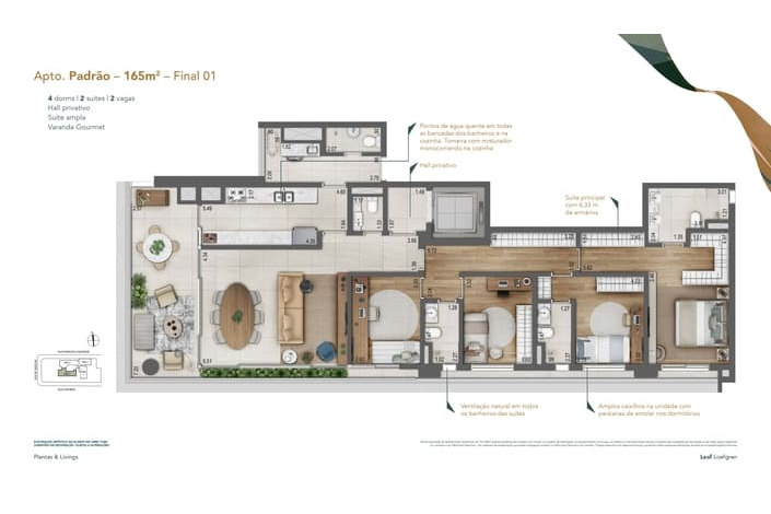 Projetado para o conforto de famílias, o Leaf Loefgren dispõe de unidades com diferenciais de exclusividade: