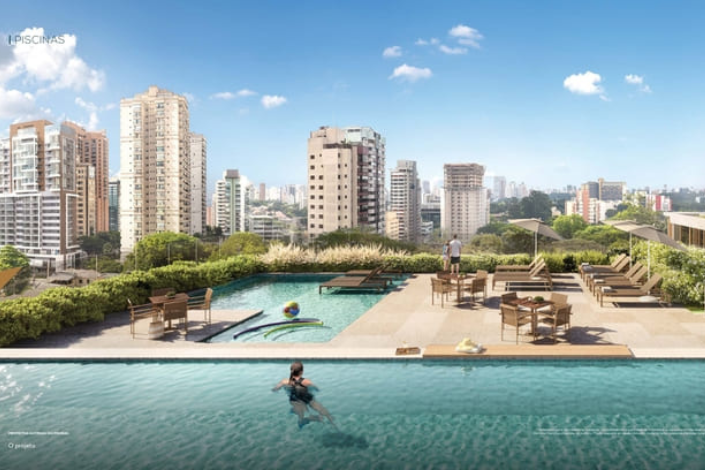 Design: Cozinhas que se integram à churrasqueira e amplas áreas envidraçadas no living, proporcionando maior amplitude e vistas panorâmicas, inclusive para o Ibirapuera em algumas unidades.